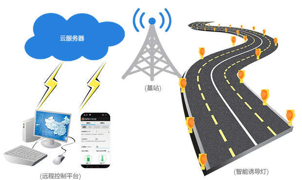 本系統(tǒng)分為智能控制終端、智能誘導(dǎo)燈、云端管理平臺(tái)三部分,其中智能控制終端與智能誘導(dǎo)燈之間通過無線數(shù)字傳輸通訊,云端管理平臺(tái)可以通過智能控制終端對(duì)指定路段的智能誘導(dǎo)燈進(jìn)行遠(yuǎn)程控制,并可遠(yuǎn)程查詢智能誘導(dǎo)燈的電池容量、工作環(huán)境溫度、開啟狀態(tài)、故障情況等信息。